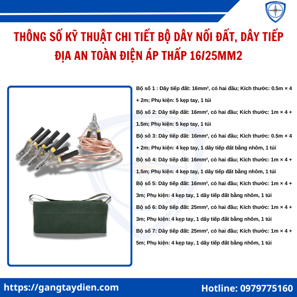 THÔNG SỐ KỸ THUẬT CHI TIẾT BỘ DÂY NỐI ĐẤT, DÂY TIẾP ĐỊA AN TOÀN ĐIỆN ÁP THẤP 16/25MM2